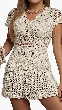 This dress is a breath of fresh air – literally! With all its cool, airy gaps and patterns, it’s absolutely perfect for when the sun decides to really show off. You get to feel breezy and look super stylish, all without melting. Plus, with its unique texture and those tiny peek-a-boo sections, you’ll definitely stand out in a crowd – in the best way possible! It’s the kind of outfit that says, “I’m effortlessly cool and maybe my grandma taught me how to make this… or maybe not!”