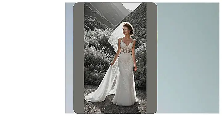 Finding your ‘top wedding dress’ is a huge deal, and this one definitely earned its spot at the top of the list. It’s got that perfect blend of fancy lace up top and a sleek, modern look on the bottom – basically, it’s the Beyoncé of wedding dresses. Plus, look at that confident smile! You just know she’s thinking, “Yep, all those hours scrolling online and trying on dresses were totally worth it for this moment.” It’s all about finding that magical outfit that makes you feel amazing and maybe, just maybe, makes you look like you haven’t secretly eaten all the wedding cake beforehand.