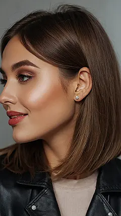 Looking at her, it’s clear this isn’t just a hair color; it’s a whole mood! With that sleek, rich brown bob bouncing just right, paired with a classic cool leather jacket, she looks ready to conquer the world… or at least ace her next pop quiz. That confident smile and perfectly styled hair make it seem like she’s got all her ducks in a row, unlike us mere mortals still trying to figure out which sock matches which. This rich brown shade just makes the whole ‘effortlessly cool’ thing look, well, actually effortless!