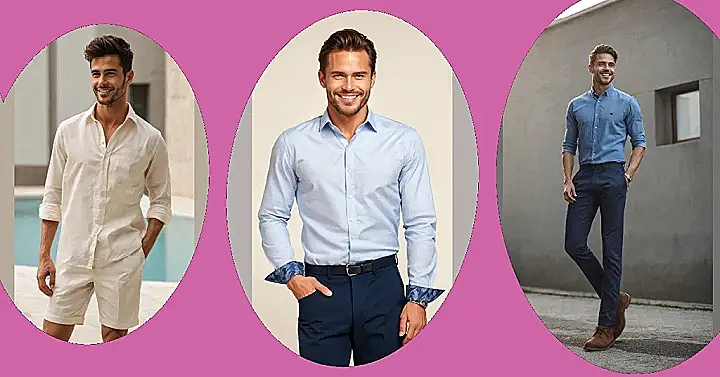 And let’s talk about that smile! It’s like he just found twenty bucks in his old jeans or remembered it’s pizza night. This whole shirt outfit just oozes friendly vibes, making him look ready for anything from a fancy-ish BBQ to just chilling by the water, probably thinking about what amazing snack to grab next. It’s the kind of combo that says, ‘I’m here to have a good time and I’m not sweating it – literally, thanks to this awesome fabric!’ So, if you’re aiming for that ‘I woke up looking awesome and ready for fun’ energy, this casual shirt and shorts combo is definitely the vibe to steal.
