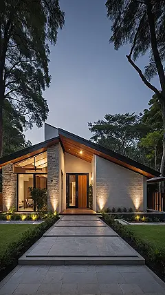 And hold up, did you catch that little peek inside through the doorway? Looks like a dining area that’s just begging for a pizza party or maybe even a fancy breakfast. The way they mixed stone walls with glass and that amazing wood really makes this place feel special, like it’s straight out of a dream home catalogue. Forget your typical suburban digs; this “best modern house” is a total game-changer, proving you can be super stylish and still feel like you’re living in an epic tree-fort, just without the splinters.