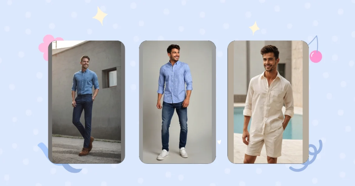 You know that feeling when you want to look super put-together but also secretly wish you were still in your PJs? Well, this shirt outfit has totally cracked the code! Our friend here is rocking a crisp, light shirt and matching shorts that practically scream ‘I’m effortlessly cool and probably on vacation.’ It’s like his clothes are whispering, ‘Don’t worry, I’m breathable!’ while also shouting, ‘Yeah, I look this good without even trying!’ Forget wrestling with fancy clothes; this simple yet stylish combo is proof that comfort and cool can totally be best buds.
