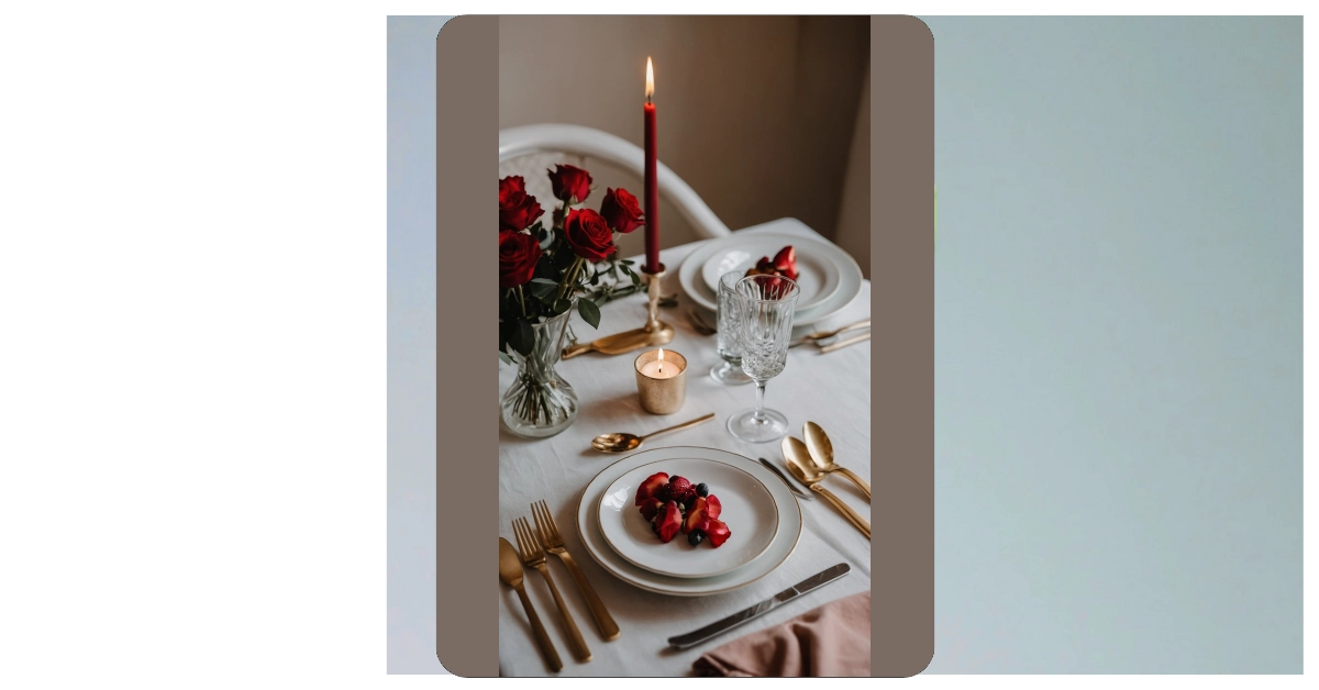 The soft, flickering glow from that single candle is practically begging for some deep conversations, or at least a good excuse to pull out your phone’s flashlight later. And those gorgeous bouquets of roses aren’t just pretty; they’re doing all the heavy lifting in the romance department, making the whole room smell super fancy and fresh. It’s the kind of setup that makes you want to put on your best outfit and pretend you actually know how to use all those different forks. Just remember, while the decor sets the scene, the real magic happens when you’re not awkwardly staring at the raspberries, wondering if they’re for eating or just admiring.