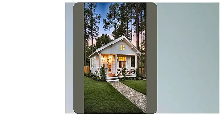 This charming little cottage, snuggled amongst those towering trees, looks like it popped straight out of a fairy tale! With its warm, glowing windows, it practically screams, ‘Come on in, we’ve got cookies!’ You can almost imagine spending a cozy evening here, maybe with a good book or some quiet board games. Just be prepared to get real friendly with whoever you invite over, because ‘personal space’ might just become a distant memory in this adorable tiny house.