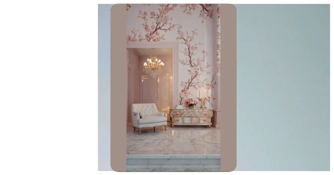 Look at this place! It’s like stepping inside a secret garden that decided to move onto your walls. This isn’t just any old wallpaper; it’s a masterpiece of delicate pink blossoms and graceful branches, basically living its best aesthetic life. You’d probably feel obligated to wear a fancy outfit just to walk through this room, or at least promise not to spill juice anywhere near these perfectly pretty petals. It’s so enchanting, you might find yourself whispering to the flowers instead of scrolling through your phone.