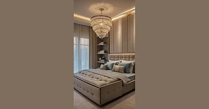 This bedroom looks so comfy, it’s like a giant marshmallow is giving you a hug! Imagine waking up in this place every morning – you’d probably forget what stress even *is*. With that sweet pink headboard and the fancy chandelier, getting out of bed might actually become a struggle, not because you are tired, but because you are so happy with your room that you want to stay in this heavenly place all the time.