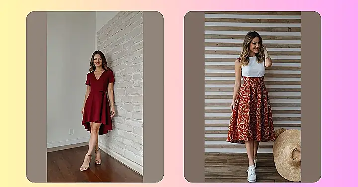 That red dress is totally rocking the “effortlessly cool” vibe, even though we all know it probably took some effort to look that amazing. It’s like, perfect for a summer picnic where you want to impress everyone, but also comfortable enough to eat a whole watermelon slice without feeling trapped. Who says you can’t have your cake (or watermelon) and look good eating it too?