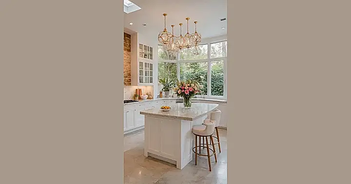 Check out this kitchen! It’s rocking some serious style, but the real star of the show has to be that massive, gorgeous bouquet of flowers right there on the island. Who needs boring old kitchen décor when you can have a giant burst of pink and white reminding you that life isn’t just about homework and chores? These home flower decor vibes instantly transform the whole space, making it feel less like ‘where I reluctantly do dishes’ and more like ‘a fancy cafe where I might actually enjoy my cereal’.