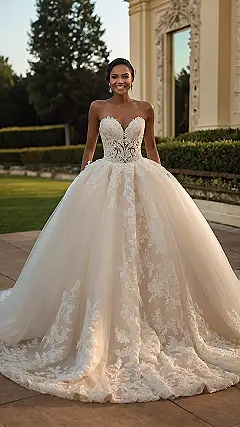 Imagine walking down the aisle in this! It’s not just a dress; it’s like a whole cloud of tulle and lace following you. You’d definitely need help getting into the car, and maybe even a spotter while you’re dancing so you don’t accidentally take out the buffet table!