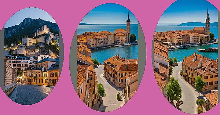 Check out this amazing spot in Europe! It’s like someone accidentally spilled a bunch of adorable orange-roofed buildings right next to a massive, sparkling blue lake or sea, with friendly green hills photobombing in the background. This isn’t just a pretty picture; it’s a whole vibe. You can almost hear the gentle waves, picture yourself cruising on one of those little boats, or just kicking back and soaking in a view so nice it probably doesn’t even need an Instagram filter. It’s the kind of place that makes you think maybe geometry homework can wait.