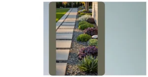 Following that super cool stone path, you realize this isn’t just a few flowers – it’s a full-on rose garden landscape designed to make anyone say “Whoa, awesome!” With its neat green lawns and even more roses peeking out everywhere, it’s proof that front yards don’t have to be boring at all. This place is so perfectly put together, you might even wonder if the roses have tiny little garden gnomes giving them pep talks and manicures when no one’s looking. It’s basically the ultimate garden glow-up, turning a simple entrance into an enchanting adventure.