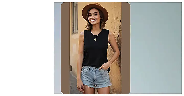 Who knew a sleeveless top could be so versatile? From the sleek, high-neck style you see here to a more relaxed scoop neck, tank tops are the unsung heroes of your closet, ready to team up with pretty much anything. They’re like the loyal best friend of your shorts, jeans, or even that skirt you sometimes remember you own. So next time you’re staring into your closet, wondering what to wear to survive another warm day, remember the simple genius of a tank top. It’s a guaranteed way to keep cool, look great, and avoid those awkward moments where you accidentally stick to the bus seat because of sweat.