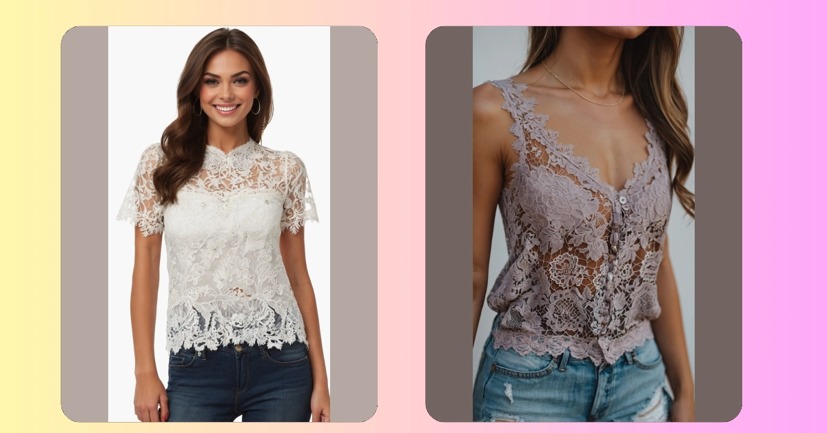Feeling like you need to level up your look without, you know, actually *trying* too hard? This awesome lace top outfit totally gets it. With its super pretty white lace, tiny flower patterns, and a hint of sparkle, it’s like your regular jeans just got invited to a fancy party! It whispers, “Yes, I’m sophisticated,” but also screams, “No, I didn’t spend all day picking this out,” which is basically the dream combo for anyone who loves fashion but also loves hitting the snooze button.