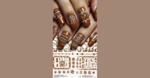 Beyond the leafy green nails, take a look at the full picture! That comfy, cream-colored sweater sleeve and the simple gold rings just complete the whole cozy-chic vibe. This isn’t just a manicure; it’s a personality statement that screams, ‘I know how to snuggle up with a good book, but I’m also subtly fabulous.’ These green nails (and their brown companions) are practically begging you to go on an apple-picking adventure or to just master the art of the perfect marshmallow roast. So, if you’re ready to embrace your inner stylish woodland fairy – or just want nails that look good enough to camouflage in a forest – this earthy design is totally calling your name!