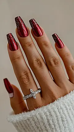 And check out those rings! Those deep red stones totally match the festive nail theme. It’s like the whole hand is ready for a holiday party. You could totally rock these with your favorite holiday sweater and jingle all the way to Christmas dinner. Who needs mistletoe when you’ve got this much holiday sparkle?