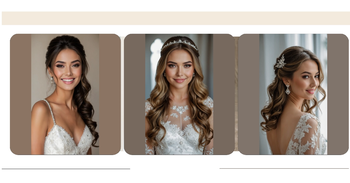 When thinking of bridal hairstyles, it’s easy to get lost in a sea of options. But don’t worry; we’ve simplified it for you! You could go for a stunning Hollywood-inspired updo that’s as timeless as your vows, or you might be dreaming about a relaxed half-up style that highlights the shine in your medium-length hair. So many styles, so little time!