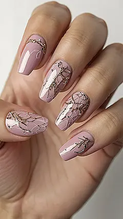 Let’s be real, the name “coffin nails” might sound a bit intense, making you think of spooky season or maybe even a vampire flick marathon. But these nails are here to prove that a name is just a name! They’re pulling off a seriously sophisticated vibe with those subtle gold branches crawling up the tips, like tiny, precious pieces of art. Forget about being six feet under, these nails are definitely soaring above the trends, giving major style points without a single ghost in sight. So next time you’re looking for nail inspiration, remember that “coffin” can actually mean classy and cool, not creepy!