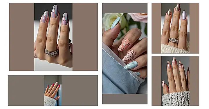 These aren’t just your grandma’s pastel polish shades! They’re like, the cooler, more sophisticated cousins who went to art school and know all the best Instagram filters. The shiny, neutral tones are giving off a subtle glow, while the lavender one is so smooth you could ice skate on it! So get ready to ditch your winter blues and embrace these dazzling designs, because your nails are about to become the main character of Spring 2025.