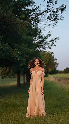 This elegant midi dress practically screams, “I’m ready for my close-up!” But instead of a red carpet, it’s rocking a grassy field. Who needs Hollywood when you can have a photoshoot in nature? This dress is perfect for twirling through fields, maybe dodging a rogue cow or two. Just kidding… unless?