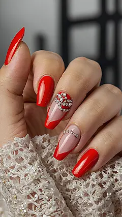Forget basic pumpkin spice – these nails are serving up some serious fall fashion, ready to dazzle everyone from the apple orchard to the Halloween party! This fiery red isn’t just a color; it’s a bold declaration that autumn has arrived, and you’re here to conquer all the cozy vibes, one spectacularly shiny manicure at a time. Just picture yourself trying to pick out the perfect pumpkin with these bedazzled beauties – you might accidentally pick up a crown instead, because, let’s be real, these nails are practically royalty.