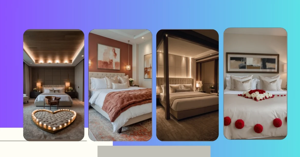 Now, speaking of romantic decor, the keyword mentioned ‘rose petals’ but those seem to be the VIPs that didn’t make it to the party on the bed! Maybe whoever set this up remembered how much of a nightmare those things are to clean up later, or perhaps a secret admirer accidentally tripped and launched them all into another dimension. Either way, even without a literal bed of roses, this room still manages to pull off major romantic vibes. Just try not to get too cozy and accidentally knock over one of those candles – setting the mood is one thing, setting off the fire alarm is a whole different (and less romantic) story!