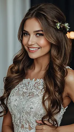 Finding the perfect hairstyle for a big day is kind of a quest, right? You might start picturing sleek and straight, but then you see something with this much flow and sparkle and suddenly your hair goals do a little flip-flop. This style, half-up and half-down with those amazing curls, proves that bridal hair is all about feeling amazing and maybe letting your hair have a little fun too, just maybe remember the hairspray to keep those happy waves in place all day!