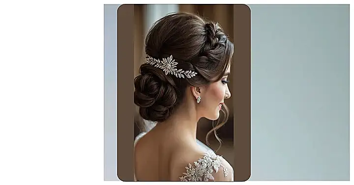 And can we talk about that gorgeous, sparkly hair accessory? It’s not just a clip; it’s practically a tiny tiara, twinkling like a secret star nestled right into her beautiful hair. Combined with those elegant earrings and the delicate lace on her dress, it’s the whole package for a picture-perfect wedding day. This whole look just shouts ‘classic bridal glam,’ proving that sometimes, achieving that effortlessly perfect vibe takes a team of hair wizards and a serious stash of glitter. It’s the kind of dreamy setup that makes you secretly start planning your own future ‘glam moment’ – way ahead of schedule, obviously!