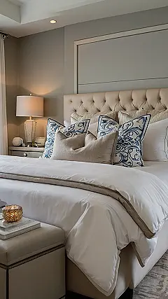 Now, notice how everything is kind of a similar color? That’s a trick designers use to make things feel peaceful, like a big, cozy hug before you drift off. The squishy headboard and the super soft blanket are basically begging you to jump in and binge-watch your favorite shows. So, if you want your bedroom to feel like a five-star hotel where sleep is the main event, this chill vibe might be your winning design style.