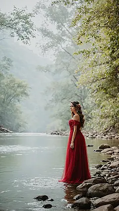 Let’s be real, while this photo is absolutely breathtaking, we’re also wondering what happens *after* the camera clicks. Is she squelching home with a slightly soggy hemline, or did she have a towel and dry clothes waiting on the riverbank? The dedication to getting that perfect, serene shot, balancing on slippery rocks in a flowing gown, probably deserves an award for ‘Most Commitment to a Photoshoot.’ At least she didn’t have to worry about anyone stepping on her dress during a dance – though keeping it clean from river muck might be an even bigger challenge!
