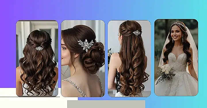 This look is elegant without being too extra, if you know what I mean. You get to keep your hair down, which is always a win, but it’s still got that “I spent hours getting ready” vibe. Plus, think about how amazing this will look in photos! Just practice your “effortless” hair flip beforehand – you know, the one that says, “Oh, this old thing? It just magically became perfect.” Good luck and enjoy your special day!