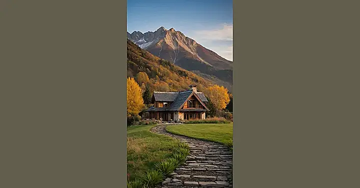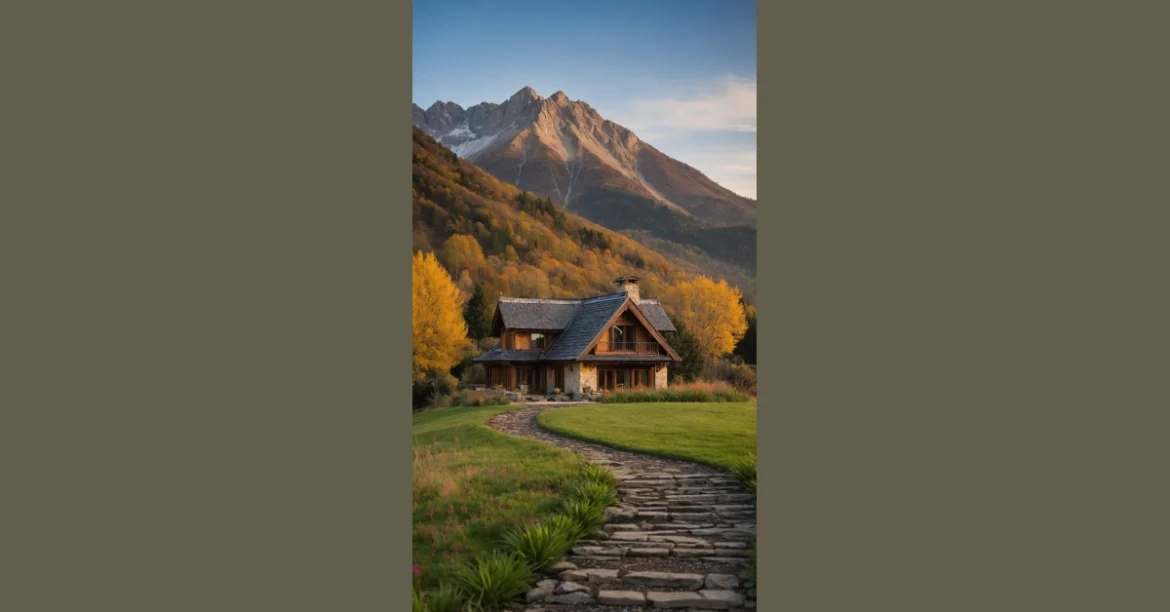 And those mountains in the background? They’re basically giving the house a high-five, reminding everyone who visits that nature’s got your back (and also some killer views). The winding stone path leading up to the front door practically begs you to skip your way inside, probably to find a giant, comfy couch and a stash of snacks. It’s like a cozy fortress for escaping homework, where the only ‘ranch duties’ involve deciding which streaming service to watch next and making sure your hot chocolate is extra marshmallow-y.