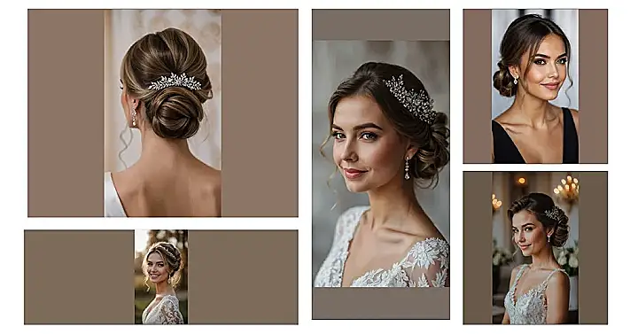Getting ready for a wedding often feels like a secret mission to make sure your hair behaves all day. But with a classic updo like this one, featuring those perfectly swept-back layers and a super fancy sparkling hairpiece, your mane is officially ready for action! No more worrying about your hair flopping into the mashed potatoes during the reception or getting caught in Uncle Bob’s enthusiastic dance moves. This isn’t just a hairstyle; it’s a declaration that you’re here to celebrate, look fabulous, and probably outshine the disco ball (sorry, disco ball, you tried).
