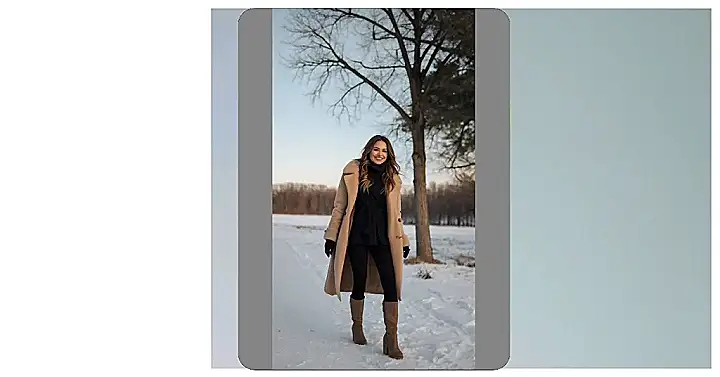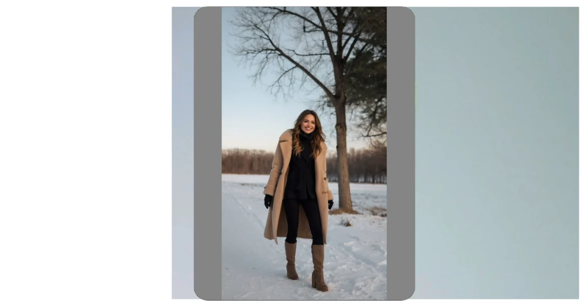 Hey there, fashion-forward friend! Check out this super stylish outfit – perfect for those chilly winter days. Imagine strolling through a park all decked out like this! That amazing gray coat is totally cozy, keeping you warm enough to build a snowman (or maybe just admire one from a safe, stylish distance). The tall boots? They’re like magic for your feet – no more icy toes! And that hat? It’s the cherry on top, keeping your head warm and your look seriously on point. It’s the kind of outfit that says, “I’m warm, I’m stylish, and I’m ready to conquer this winter!”