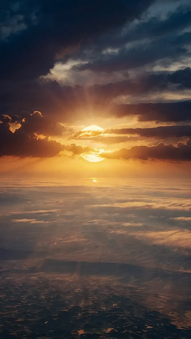 Looking down at the landscape, you see a whole world of hills and valleys, all covered in a fuzzy blanket of clouds. The sun rays are sneaking through, and it looks like the whole world is getting ready for a good night’s rest! It’s almost like a super epic, breathtaking scene straight from a movie. Who needs filters when you have a sky that looks like this, right?