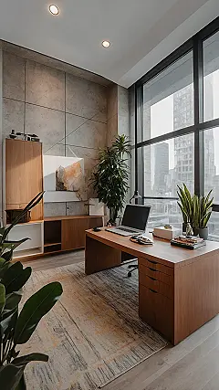 This office looks so much cooler than your desk at school, right? You could totally boss your homework around in a place like this! With that massive window showing off the whole city, and even a skylight above your head, it’s like working inside a giant, fancy fishbowl, but in a totally good way. Forget staring at a boring wall; here, you get a front-row seat to the clouds and skyscrapers, probably even spotting a few UFOs if you look hard enough! It’s the ultimate private hideout where you can get your genius ideas flowing, far away from noisy hallways and annoying group projects.