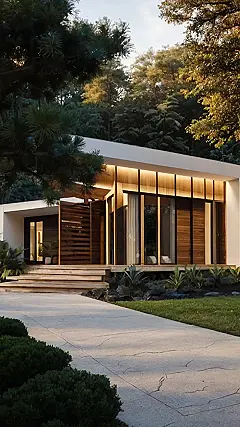 This wood house design is seriously awesome! Imagine cozying up by the fireplace on a chilly evening, the smell of pine filling the air. It looks like something straight out of a fairytale, nestled amongst towering trees—like a secret hideout for woodland creatures (but way more stylish!). The huge windows let in tons of natural light, so you can really appreciate the beautiful forest setting. It’s the perfect spot for a family getaway, or even just a weekend of quiet relaxation. Seriously, who wouldn’t want to live here?