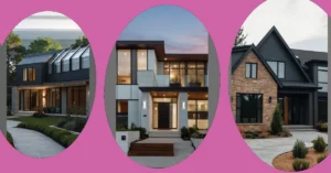 Seriously, look at that charming front porch! It’s like a wooden hug waiting to welcome you home. The stone pathway leading up to it adds a touch of rustic elegance, while the dark roof makes the whole house pop. It’s the perfect blend of modern and nature-inspired, all wrapped up in a design that’s both inviting and absolutely Instagram-worthy. You could practically smell the freshly baked cookies from here!