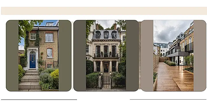 Above all that brick brilliance, you can spot the chimneys standing tall, probably gossiping with the TV antennas about who’s watching what. Each one of these ‘london house’ gems has its own little quirks, from the neatly trimmed bushes to the tiny plants trying their best to add some greenery. You can practically hear the subtle hum of city life and imagine someone inside wondering if it’s finally going to stop drizzling, or if it’s just another charming, slightly damp, London day.