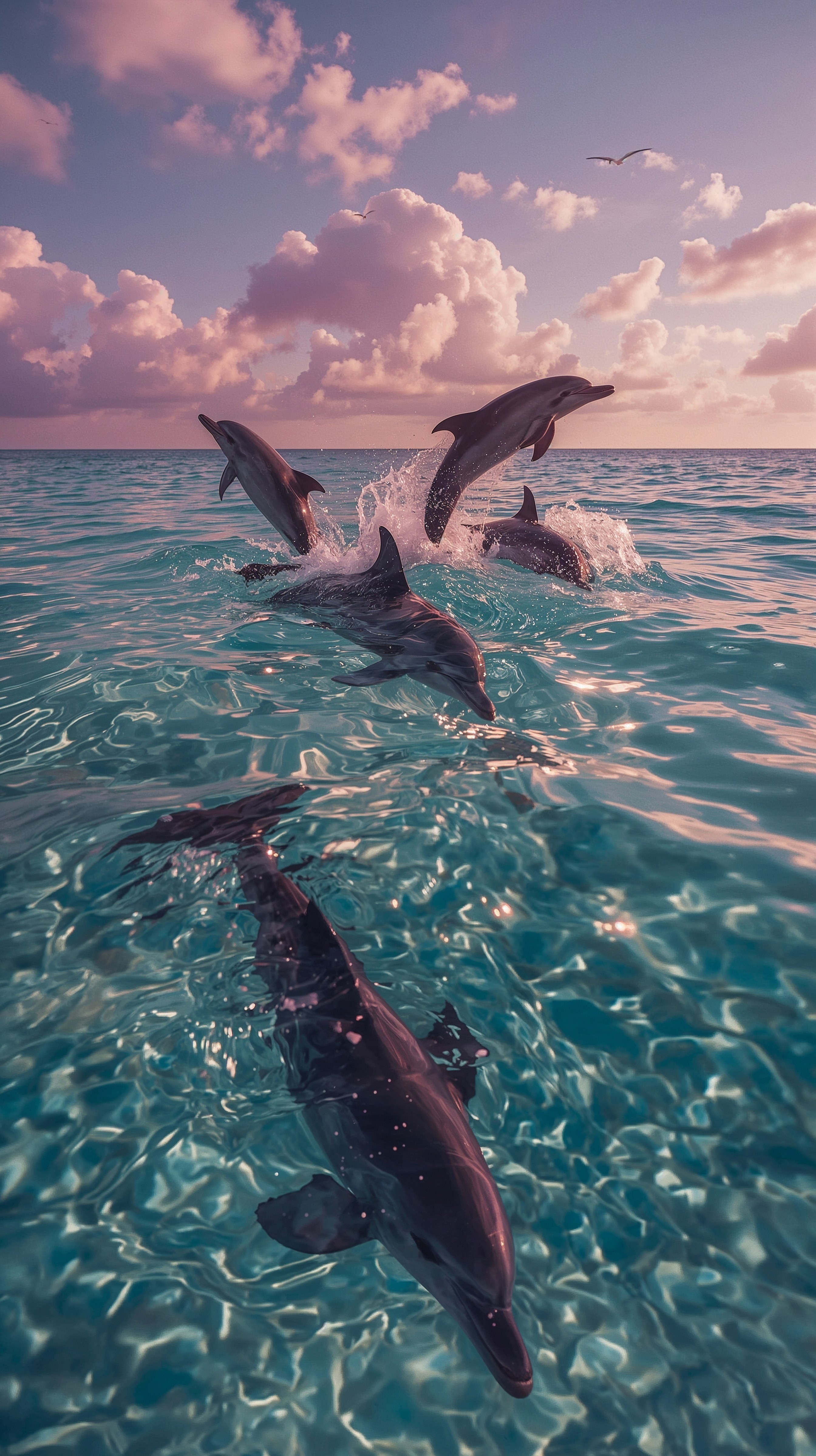 #3 3 Dolphins Sunset Wallpaper: Cute Summer Ocean Magic