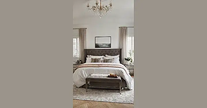 Whoa, talk about a major glow-up! This bedroom is basically saying, “Welcome to your personal five-star resort.” Just look at that huge bed with the fancy tufted headboard and enough fluffy pillows to build a fort (or just sink into pure comfort). And don’t even get us started on that sparkly chandelier – you might start expecting room service every morning! If you’re dreaming of a space this chic and comfy, but don’t want to spend years decorating, then you’re probably thinking, ‘rooms to go’ can make this happen. It’s all about getting that magazine-worthy look without breaking a sweat, or your piggy bank.