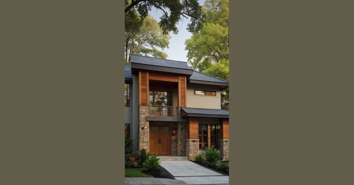 This house exterior is like a remix of old-school cool and modern vibes. You’ve got the traditional feel with the wood and stone, but then BAM! It’s got these clean lines and big windows that scream “future home.” It’s like if your grandparents’ house went to a fancy design school and came back totally transformed but still knew how to make a killer casserole.