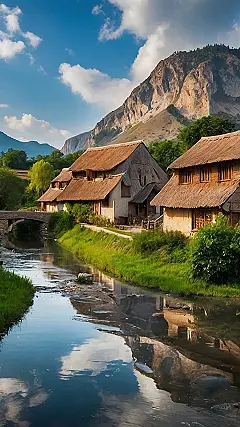 This picture totally screams “storybook village,” right? It looks like the kind of place where you’d expect to see a hobbit chilling with a cup of tea or maybe a gnome fishing in that river! I bet life in this village is super chill, like living inside a postcard. It is making me wonder what sort of adventures could happen with such a beautiful landscape.