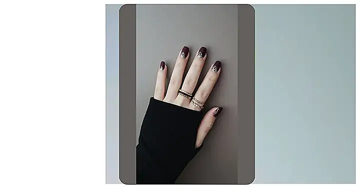 **Paragraph 1:** OMG, check out these nails! They’re like a sophisticated Thanksgiving feast for your fingertips. That deep burgundy is totally autumnal, like a perfectly spiced pumpkin latte. And those rings? They’re the ultimate accessory – imagine wearing these while you’re stuffing your face with turkey and pie! They’re so fancy, they’d make even Grandma impressed. Forget cranberry sauce, these nails are the real centerpiece of your Thanksgiving outfit!