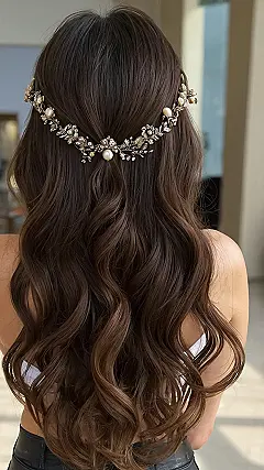 Imagine you’re a mermaid who just got out of the ocean and wants to look glam for a beach party. You’d definitely want to try this hairstyle! The loose waves make you feel like you’re flowing through the water, and the hairpiece gives you that extra sparkle like the sun reflecting off the waves. It’s the perfect blend of beachy and fancy, so you can look amazing wherever you go!