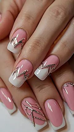 These nails are totally giving off ‘Mean Girls’ vibes, but in the best way possible. That cute pink and white combo is classic, like a perfect pink lip gloss, but the silver details take them to the next level. You could be rocking these at the mall, at a concert, or even while studying for that history test – they’re versatile like that. Just try not to blind anyone with the bling!