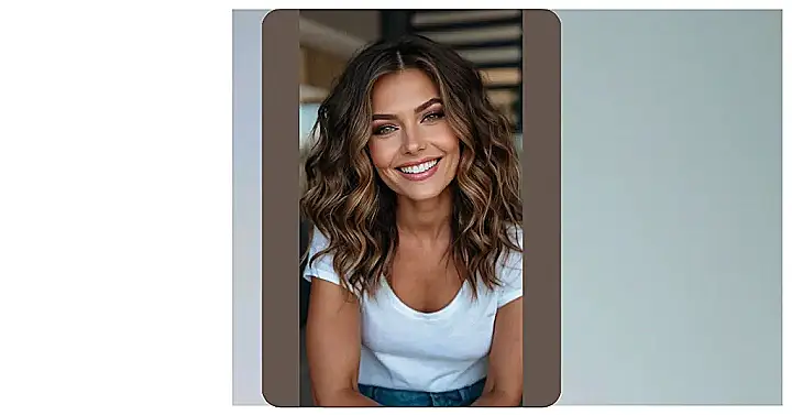 The image shows a woman with gorgeous, wavy hair. It’s the kind of hair that makes you want to run your fingers through it, but we know moms are usually too busy for that! This is probably why they need a little help finding hairstyles that are easy, stylish, and won’t fall out the moment they try to wrangle a toddler. Let’s be honest, sometimes even moms just want to look and feel their best, and that’s okay!