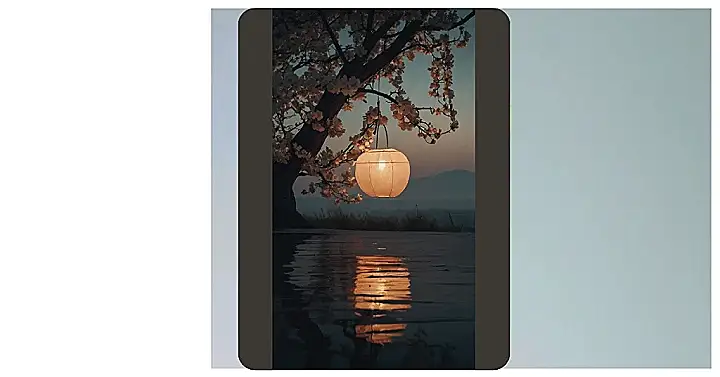 This picture is like a scene from a fairytale, but with a super chill vibe! It’s got a lone lamp hanging from a tree branch, and the light is making a super cool reflection in the water below. It’s like the lamp is the star of the show, and the rest of the scenery is just there to give it a calm and peaceful backdrop. The whole picture feels really peaceful and serene. It reminds me of how sometimes all you need to do is focus on a few simple things, and the rest of the world will fade away.