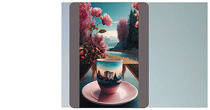 Imagine waking up to this view! The pink flowers blooming, the sun peeking over the mountains, and the calm river flowing through the valley. It’s like stepping into a scene from a dreamy movie. Plus, having a cup of your favorite drink on a cozy table just adds to the perfect morning feeling. Who wouldn’t want to start their day with a scene like this? It’s the kind of morning that makes you want to take a deep breath, smile, and say, “This is the life!”
