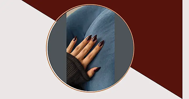 Those long, pointy nails are rocking a stunning maroon gel polish. It’s like the perfect shade for someone who wants to stand out but still be a little mysterious, you know? Like a vampire who loves to wear fancy clothes but also really loves pumpkin spice lattes.