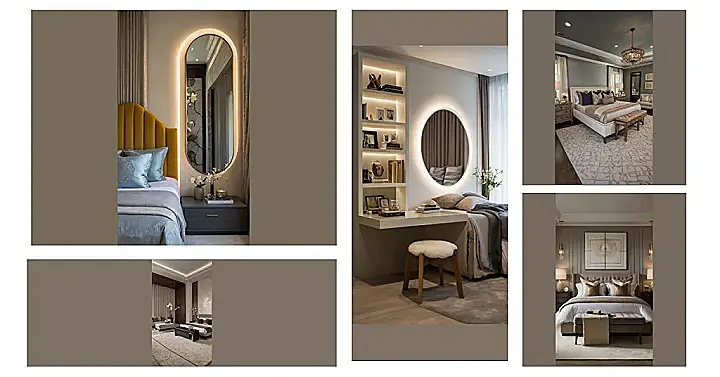 Check out the details in this master bedroom decor setup. That glowing round mirror is basically a selfie station waiting to happen, or at least makes getting ready feel less like a chore and more like you’re about to walk a red carpet. And those shelves? Perfect for showing off your favorite treasures (or just making it *look* like you’re super organized). Plus, that fluffy stool looks so comfy, you might spend more time sitting there looking fabulous than actually using the desk! It proves that master bedrooms can be both stylish and practical, making them your absolute favorite place to be.